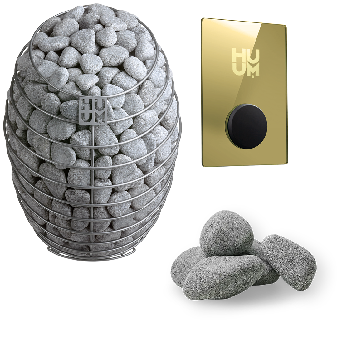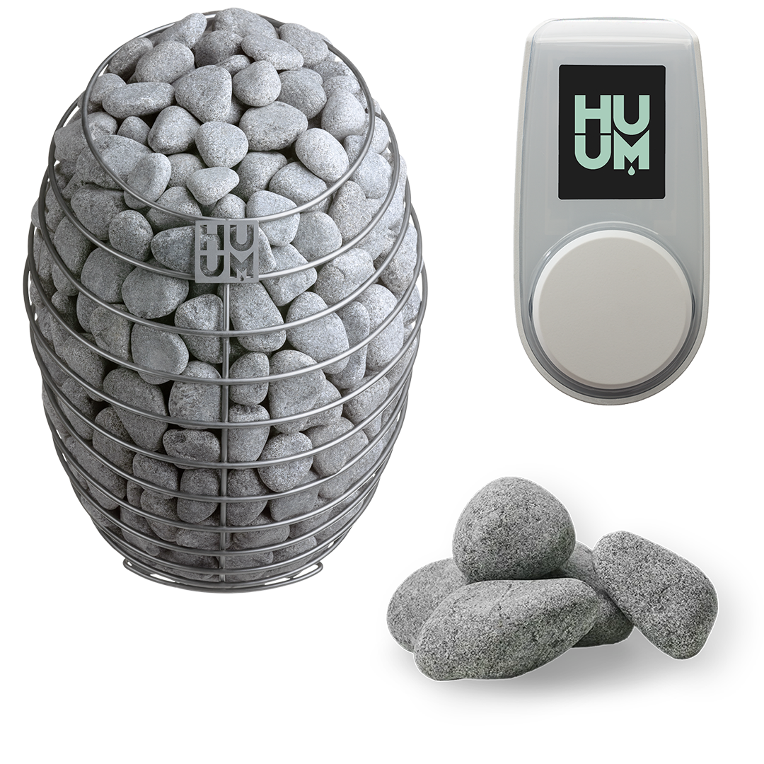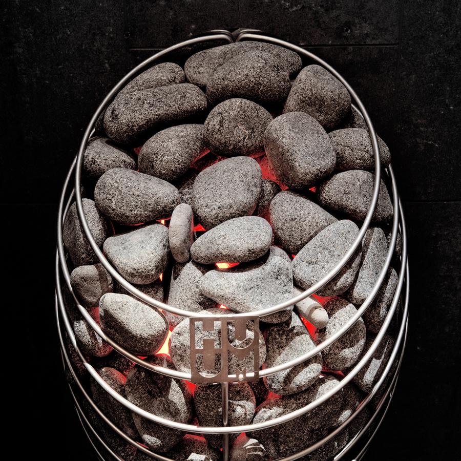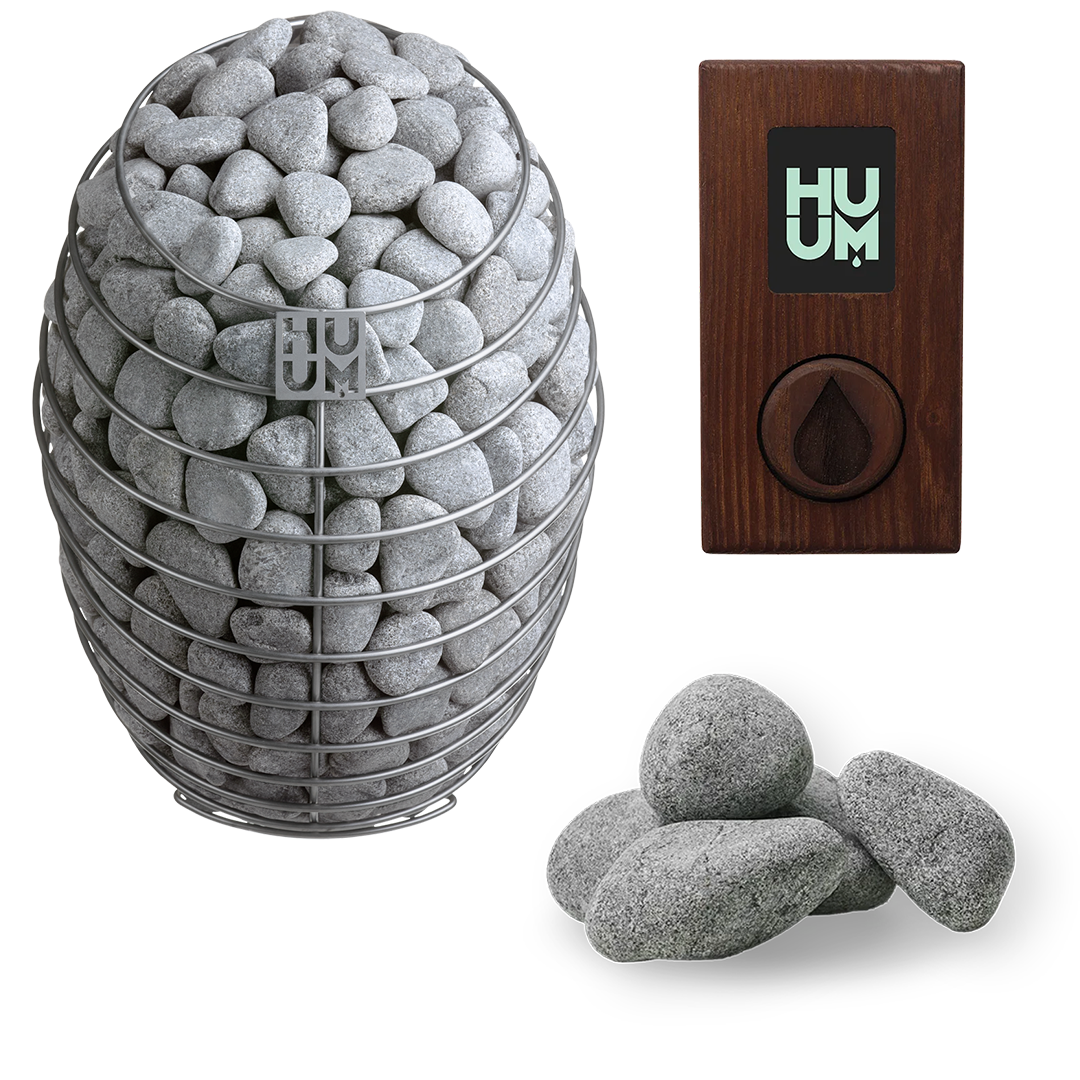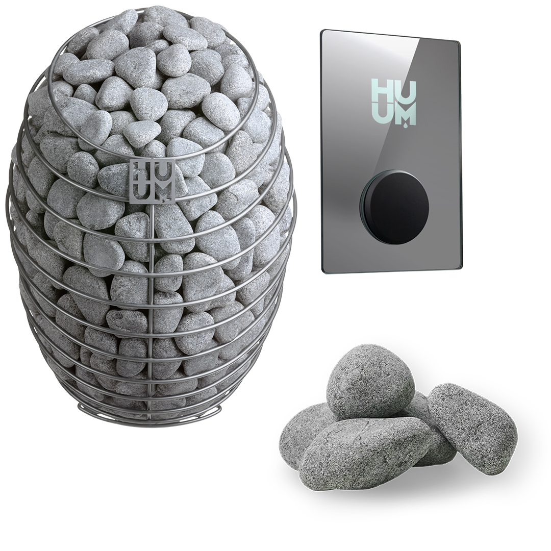 HUUM Drop is the most popular sauna heater on HUUMs lineup. This wall-mounted sauna heater offers aesthetic appeal, equal heat, and superior steam to home saunas. Drop takes minimal space on your sauna thanks to its wall mounted design. HUUM Drop has a large rock capacity of 121 lbs. HUUM Drop is made from stainless steel in Estonia.