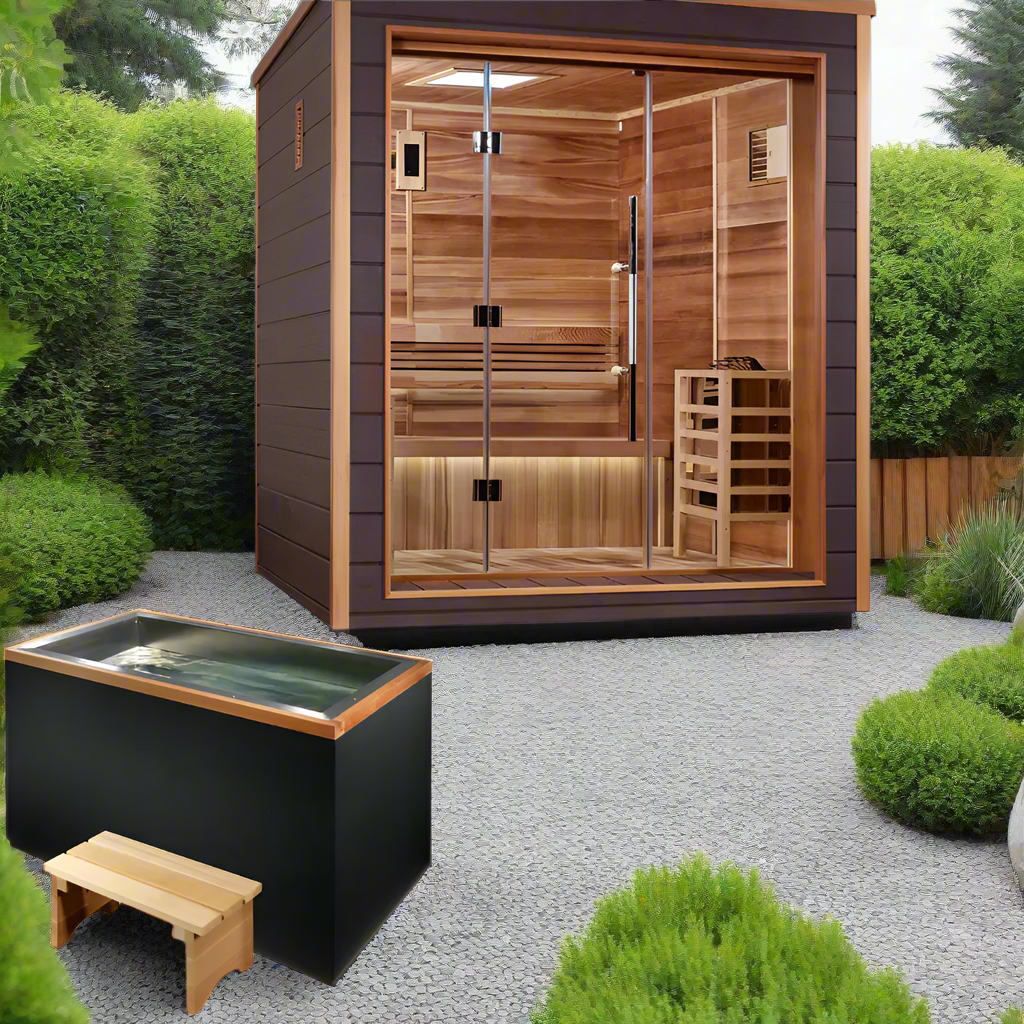 A true traditional outdoor sauna with an all weather exterior for harsh weather, the Drammen is a gorgeous addition to anybody's home. Turn the heater on with either twist knobs or an optional digital control panel (w/ WiFi controls), then pour a little water over the sauna stones and watch the steam rise as you lay back and relax in your very own outdoor sauna. This is a complete kit that includes everything you need to have a relaxing sauna session.Start your day with a clear mind or destress after a long day, make saunaing part of your routine.